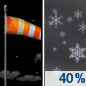 Temperature: 33°F Wind Speed: 25 to 30 mph Wind Direction: W Forecast: A chance of rain showers between midnight and 3am, then a chance of rain and snow showers. Mostly clear. Low around 33, with temperatures rising to around 38 overnight. West wind 25 to 30 mph, with gusts as high as 45 mph. Chance of precipitation is 40%. |