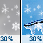 Temperature: 9°F Wind Speed: 10 mph Wind Direction: NE Forecast: A chance of snow showers and a chance of freezing rain. Mostly cloudy, with a low around 9. |