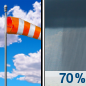 Temperature: 61°F Wind Speed: 6 to 23 mph Wind Direction: SSW Forecast: Rain showers likely after 2pm. Mostly sunny. High near 61, with temperatures falling to around 49 in the afternoon. South southwest wind 6 to 23 mph, with gusts as high as 37 mph. Chance of precipitation is 70%. |