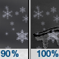 Temperature: 28°F Wind Speed: 5 mph Wind Direction: E Forecast: Snow likely before 2am, then snow and freezing rain. Mostly cloudy, with a low around 28. Chance of precipitation is 80%. |