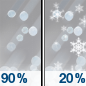 Temperature: 43°F Wind Speed: 10 to 17 mph Wind Direction: S Forecast: Snow before 11am, then a chance of snow and a slight chance of sleet between 11am and noon, then a slight chance of sleet and a slight chance of freezing rain between noon and 2pm. Cloudy, with a high near 43. South wind 10 to 17 mph, with gusts as high as 25 mph. Chance of precipitation is 90%. New snow accumulation of less than one inch possible. |