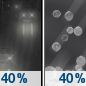 Temperature: 40°F Wind Speed: 5 mph Wind Direction: SW Forecast: A slight chance of rain between 8pm and 3am. Mostly cloudy, with a low around 40. |