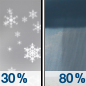 Temperature: 27°F Wind Speed: 5 to 8 mph Wind Direction: W Forecast: A chance of snow showers. Mostly cloudy, with a low around 27. |