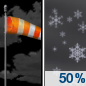 Temperature: 10°F Wind Speed: 5 mph Wind Direction: N Forecast: A chance of snow. Mostly cloudy, with a low around 10. Chance of precipitation is 40%. |
