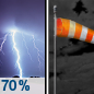 Temperature: 41°F Wind Speed: 10 to 25 mph Wind Direction: SW Forecast: Showers and thunderstorms likely before 9pm, then a chance of showers and thunderstorms between 9pm and 11pm. Mostly cloudy. Low around 41, with temperatures rising to around 43 overnight. Southwest wind 10 to 25 mph, with gusts as high as 40 mph. Chance of precipitation is 70%. New rainfall amounts between a half and three quarters of an inch possible. |