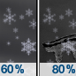 Temperature: 39°F Wind Speed: 9 to 13 mph Wind Direction: S Forecast: A chance of snow showers. Mostly cloudy, with a high near 39. |