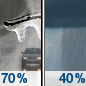 Temperature: 38°F Wind Speed: 6 mph Wind Direction: SW Forecast: Rain showers. Mostly cloudy, with a low around 38. Southwest wind around 6 mph, with gusts as high as 24 mph. Chance of precipitation is 80%. New rainfall amounts between a tenth and quarter of an inch possible. |