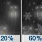 Temperature: 38°F Wind Speed: 13 mph Wind Direction: N Forecast: A chance of snow. Mostly cloudy, with a high near 38. Chance of precipitation is 40%. |