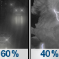 Temperature: 50°F Wind Speed: 5 mph Wind Direction: SE Forecast: Rain likely and a chance of thunderstorms. Mostly cloudy, with a low around 50. Chance of precipitation is 70%. |