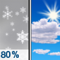 Temperature: 32°F Wind Speed: 9 to 20 mph Wind Direction: NW Forecast: Snow before 10am. Mostly sunny. High near 32, with temperatures falling to around 22 in the afternoon. Northwest wind 9 to 20 mph, with gusts as high as 35 mph. Chance of precipitation is 80%. New snow accumulation of 1 to 3 inches possible. |