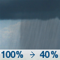 Temperature: 48°F Wind Speed: 5 to 10 mph Wind Direction: NW Forecast: A chance of rain showers before 8pm, then showers and thunderstorms likely. Mostly cloudy, with a low around 48. |