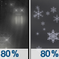 Temperature: 22°F Wind Speed: 8 mph Wind Direction: W Forecast: A chance of snow. Mostly cloudy, with a low around 22. West wind around 8 mph. Chance of precipitation is 30%. |