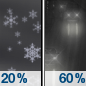 Temperature: 7°F Wind Speed: 10 mph Wind Direction: S Forecast: A slight chance of snow before midnight. Mostly cloudy, with a low around 7. Chance of precipitation is 20%. |