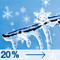 Temperature: 4°F Wind Speed: 6 mph Wind Direction: E Forecast: A chance of snow before 9pm. Mostly cloudy. Low around 4, with temperatures rising to around 8 overnight. East wind around 6 mph. Chance of precipitation is 30%. |