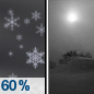 Temperature: 25°F Wind Speed: 14 mph Wind Direction: S Forecast: A slight chance of snow. Partly sunny, with a high near 25. |
