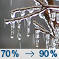 Temperature: 34°F Wind Speed: 15 mph Wind Direction: NE Forecast: Freezing rain. Cloudy, with a high near 34. Northeast wind around 15 mph. Chance of precipitation is 90%. New ice accumulation of less than half an inch possible. |