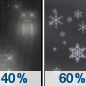 Temperature: 35°F Wind Speed: 2 mph Wind Direction: WSW Forecast: Rain likely. Mostly cloudy, with a low around 35. West southwest wind around 2 mph. Chance of precipitation is 60%. |