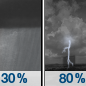 Temperature: 66°F Wind Speed: 10 to 15 mph Wind Direction: SW Forecast: Showers and thunderstorms. Mostly cloudy. High near 66, with temperatures falling to around 64 in the afternoon. Southwest wind 10 to 15 mph. Chance of precipitation is 80%. New rainfall amounts between a quarter and half of an inch possible. |
