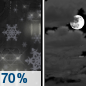 Temperature: 30°F Wind Speed: 15 mph Wind Direction: E Forecast: A chance of rain before 8pm, then a chance of rain and snow between 8pm and 9pm, then rain and snow between 9pm and 1am, then snow and a slight chance of sleet between 1am and 3am, then snow and sleet and freezing rain between 3am and 5am, then sleet and a slight chance of snow and a slight chance of freezing rain. Cloudy, with a low around 30. East wind around 15 mph, with gusts as high as 30 mph. Chance of precipitation is 100%. New snow accumulation of less than one inch possible. Little or no ice accumulation expected. |