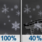 Temperature: 25°F Wind Speed: 15 to 20 mph Wind Direction: W Forecast: A slight chance of snow showers before 7am. Mostly cloudy, with a high near 25. West wind 15 to 20 mph, with gusts as high as 40 mph. Chance of precipitation is 20%. New snow accumulation of less than half an inch possible. |