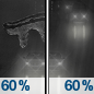 Temperature: 41°F Wind Speed: 6 mph Wind Direction: S Forecast: Rain likely. Mostly cloudy, with a low around 41. Chance of precipitation is 60%. |