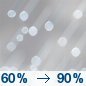 Temperature: 41°F Wind Speed: 9 mph Wind Direction: S Forecast: A chance of rain showers after 3am. Cloudy, with a low around 41. South wind around 9 mph. Chance of precipitation is 30%. |