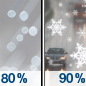 Temperature: 39°F Wind Speed: 9 mph Wind Direction: S Forecast: Snow showers before 3pm, then rain showers between 3pm and 5pm, then rain and snow showers. Mostly cloudy, with a high near 39. South wind around 9 mph. Chance of precipitation is 80%. |