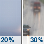 Temperature: 19°F Wind Speed: 0 to 5 mph Wind Direction: W Forecast: Patchy fog and a slight chance of freezing drizzle before 7pm, then a chance of drizzle and patchy fog and a slight chance of freezing drizzle between 7pm and 1am, then a chance of snow. Cloudy. Low around 19, with temperatures rising to around 28 overnight. West wind 0 to 5 mph. Chance of precipitation is 30%. |
