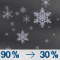 Temperature: 21°F Wind Speed: 0 to 5 mph Wind Direction: E Forecast: Snow likely after 11am. Mostly cloudy. High near 21, with temperatures falling to around 19 in the afternoon. East wind 0 to 5 mph. Chance of precipitation is 70%. New snow accumulation of 1 to 2 inches possible. |