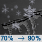 Temperature: 31°F Wind Speed: 10 to 15 mph Wind Direction: E Forecast: Snow likely between 7pm and 10pm, then freezing rain and rain and snow. Cloudy, with a low around 31. East wind 10 to 15 mph, with gusts as high as 25 mph. Chance of precipitation is 90%. New snow accumulation of 1 to 2 inches possible. Little or no ice accumulation expected. |