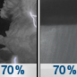 Temperature: 43°F Wind Speed: 7 to 13 mph Wind Direction: SW Forecast: A chance of rain showers before 7pm, then isolated thunderstorms between 7pm and 8pm, then rain showers likely. Mostly cloudy, with a low around 43. Southwest wind 7 to 13 mph. Chance of precipitation is 70%. New rainfall amounts between a tenth and quarter of an inch possible. |