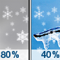 Temperature: 25°F Wind Speed: 2 to 10 mph Wind Direction: W Forecast: Snow showers likely after 7am. Mostly cloudy, with a high near 25. West wind 2 to 10 mph. Chance of precipitation is 60%. New snow accumulation of less than one inch possible. |