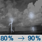 Temperature: 81°F Wind Speed: 10 to 15 mph Wind Direction: S Forecast: A slight chance of rain showers between 7am and 1pm, then a slight chance of showers and thunderstorms. Partly sunny, with a high near 81. South wind 10 to 15 mph, with gusts as high as 25 mph. |
