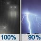 Temperature: 49°F Wind Speed: 9 to 15 mph Wind Direction: SSW Forecast: Rain before 5am, then showers and thunderstorms. Cloudy, with a low around 49. New rainfall amounts between three quarters and one inch possible. |