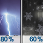 Temperature: 39°F Wind Speed: 9 to 14 mph Wind Direction: W Forecast: Showers and thunderstorms before 2am, then a chance of rain showers and a slight chance of sleet. Mostly cloudy, with a low around 39. West wind 9 to 14 mph, with gusts as high as 24 mph. Chance of precipitation is 80%. New rainfall amounts between a half and three quarters of an inch possible. |
