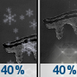 Temperature: 35°F Wind Speed: 10 mph Wind Direction: E Forecast: Sleet likely and freezing rain likely and rain likely before 8am, then snow likely and sleet likely and freezing rain likely between 8am and 10am, then a slight chance of sleet and a chance of rain and snow between 10am and 1pm, then a slight chance of sleet and a slight chance of rain and snow between 1pm and 4pm, then a slight chance of sleet and a chance of rain and snow. Mostly cloudy, with a high near 35. East wind around 10 mph. Chance of precipitation is 60%. Little or no ice accumulation expected. |