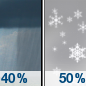Temperature: 40°F Wind Speed: 6 to 9 mph Wind Direction: SE Forecast: Rain showers likely. Mostly cloudy, with a low around 40. Southeast wind 6 to 9 mph. Chance of precipitation is 70%. |