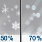 Temperature: 34°F Wind Speed: 15 mph Wind Direction: N Forecast: A chance of snow. Mostly cloudy, with a high near 34. North wind around 15 mph. Chance of precipitation is 50%. |