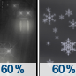 Temperature: 35°F Wind Speed: 6 mph Wind Direction: SW Forecast: Rain likely before 3am, then rain and snow likely. Mostly cloudy, with a low around 35. |