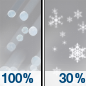 Temperature: 18°F Wind Speed: 6 mph Wind Direction: W Forecast: A chance of snow. Mostly cloudy, with a low around 18. West wind around 6 mph. Chance of precipitation is 40%. |