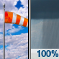 Temperature: 58°F Wind Speed: 17 to 22 mph Wind Direction: S Forecast: Rain showers after 1pm. Mostly cloudy, with a high near 58. South wind 17 to 22 mph, with gusts as high as 41 mph. Chance of precipitation is 100%. New rainfall amounts between a tenth and quarter of an inch possible. |