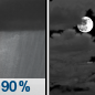 Temperature: 45°F Wind Speed: 8 to 15 mph Wind Direction: WNW Forecast: Rain showers before midnight. Mostly cloudy, with a low around 45. West northwest wind 8 to 15 mph, with gusts as high as 28 mph. Chance of precipitation is 90%. New rainfall amounts between a tenth and quarter of an inch possible. |