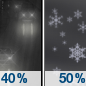 Temperature: 30°F Wind Speed: 6 to 13 mph Wind Direction: W Forecast: A chance of rain before 3am. Mostly cloudy. Low around 30, with temperatures rising to around 35 overnight. West wind 6 to 13 mph. Chance of precipitation is 50%. |