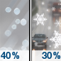Temperature: 39°F Wind Speed: 10 mph Wind Direction: NE Forecast: A chance of snow showers before 8am, then a chance of rain showers between 8am and 10am, then a chance of sleet between 10am and 4pm, then a chance of rain showers. Cloudy, with a high near 39. Northeast wind around 10 mph. Chance of precipitation is 40%. |