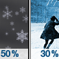 Temperature: 14°F Wind Speed: 8 to 14 mph Wind Direction: WSW Forecast: A chance of snow showers. Mostly cloudy, with a high near 14. Wind chill values as low as -9. West southwest wind 8 to 14 mph, with gusts as high as 22 mph. Chance of precipitation is 50%. New snow accumulation of less than one inch possible. |