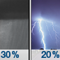 Temperature: 73°F Wind Speed: 10 mph Wind Direction: W Forecast: A chance of showers and thunderstorms. Mostly cloudy, with a high near 73. Chance of precipitation is 40%. |