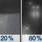 Temperature: 41°F Wind Speed: 5 to 14 mph Wind Direction: NW Forecast: Showers and thunderstorms before 8pm, then rain. Mostly cloudy, with a low around 41. Chance of precipitation is 90%. |