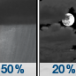 Temperature: 26°F Wind Speed: 2 to 6 mph Wind Direction: S Forecast: A chance of rain and snow. Cloudy, with a low around 26. Chance of precipitation is 50%. |