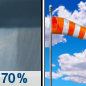 Temperature: 42°F Wind Speed: 14 to 23 mph Wind Direction: W Forecast: Rain showers likely before 7am. Mostly sunny, with a high near 42. Chance of precipitation is 70%. |