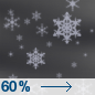 Temperature: 1°F Wind Speed: 10 to 15 mph Wind Direction: NW Forecast: Snow likely before midnight, then a chance of snow showers. Cloudy. Low around 1, with temperatures rising to around 4 overnight. Northwest wind 10 to 15 mph, with gusts as high as 35 mph. Chance of precipitation is 60%. New snow accumulation of less than half an inch possible. |